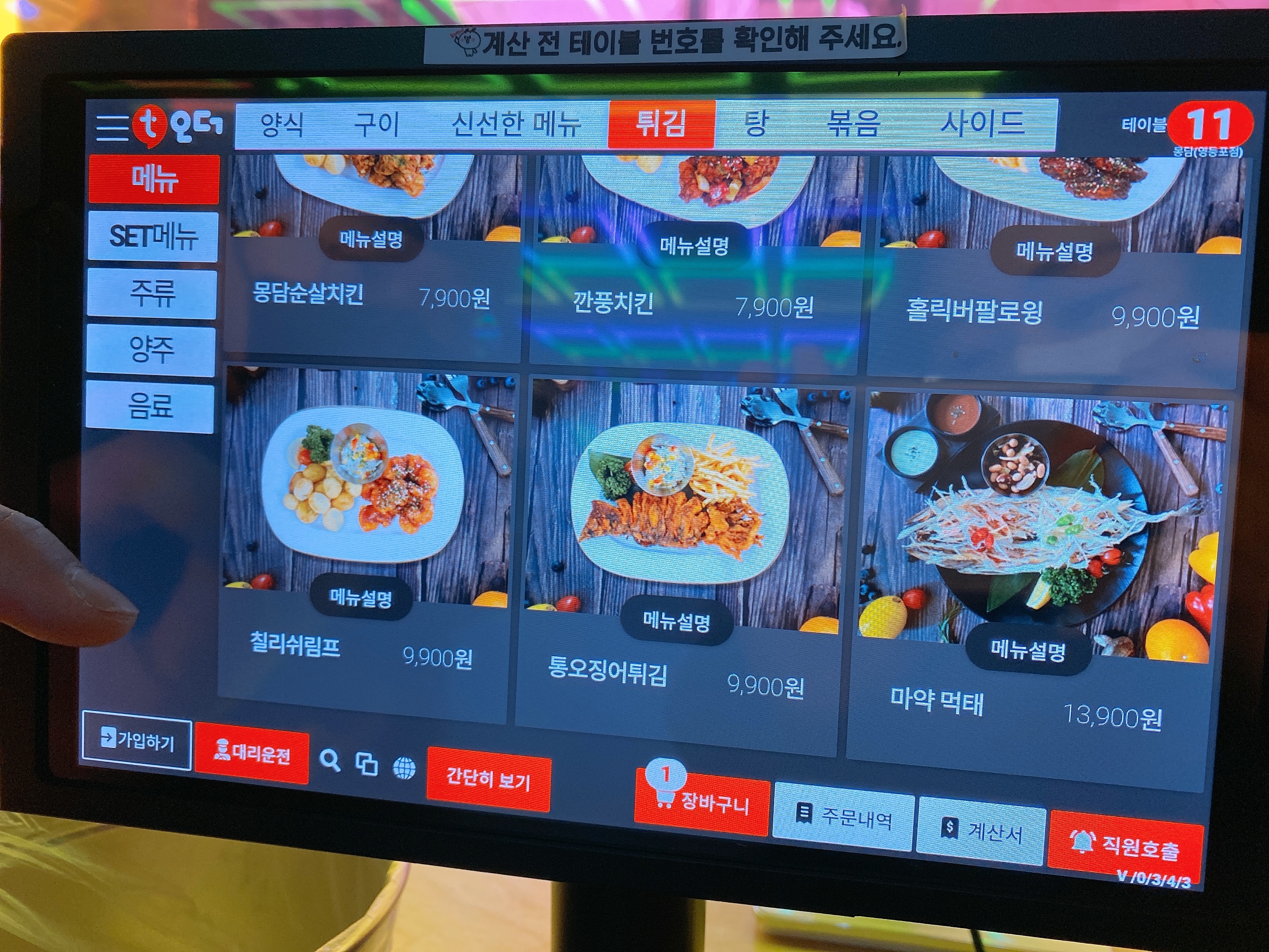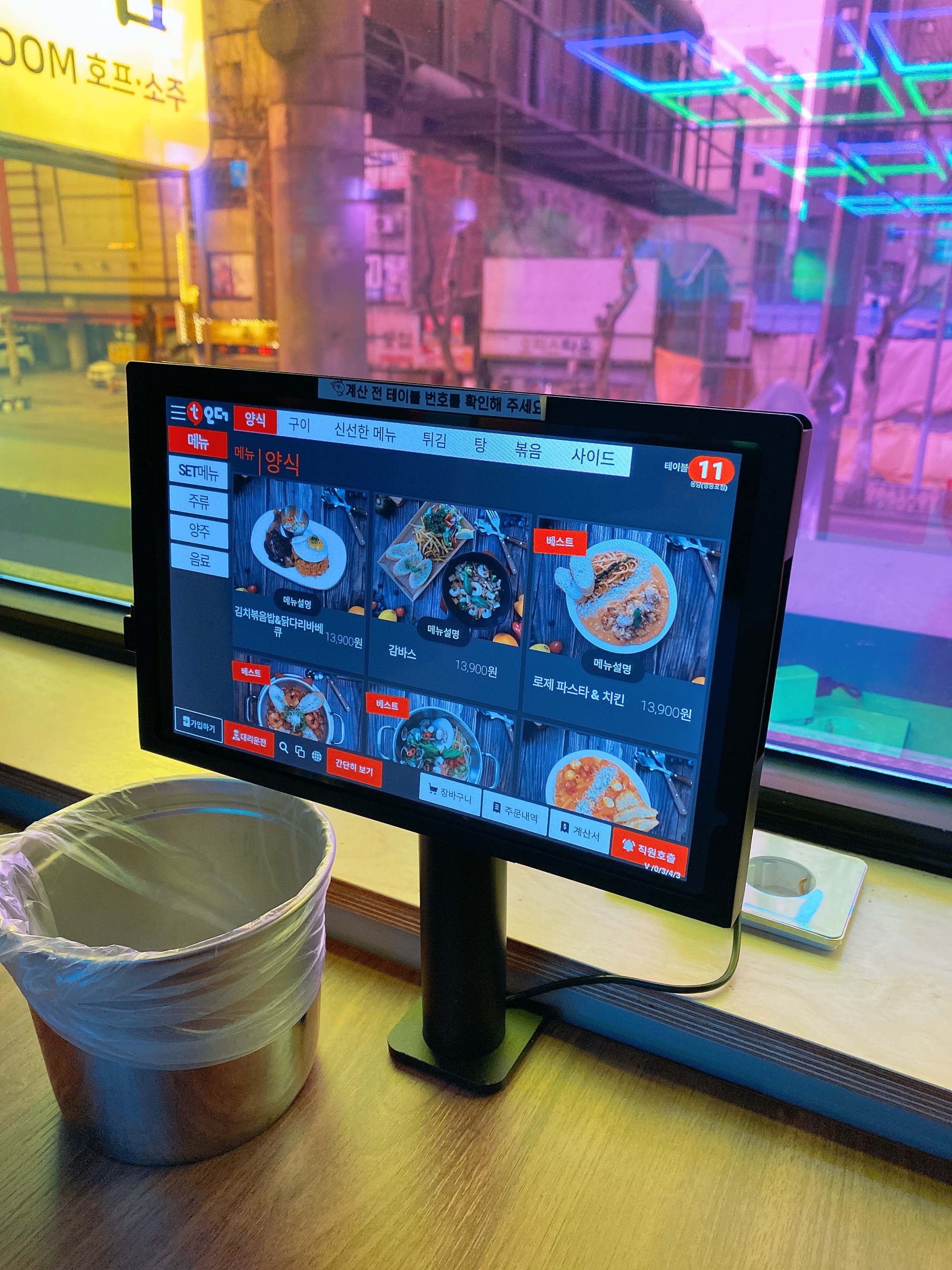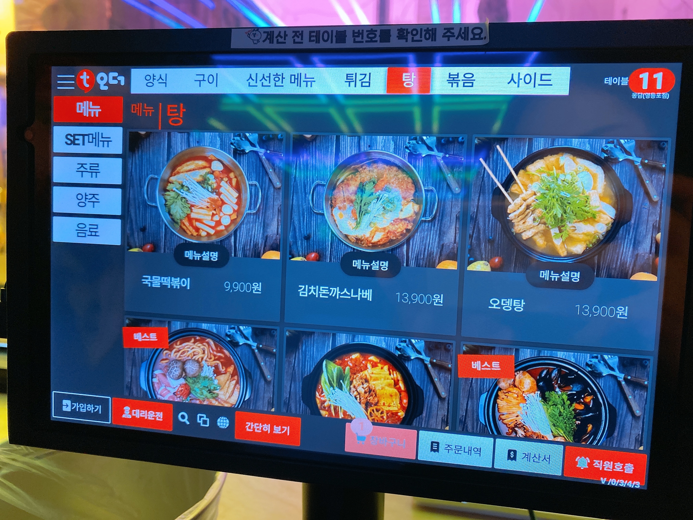 테이블에 요로코롬 태블릿이 있는데요 ~ 이걸로 주문도 하고 직원 호출도 가능해서 엄청 편했어요 ㅎㅎ