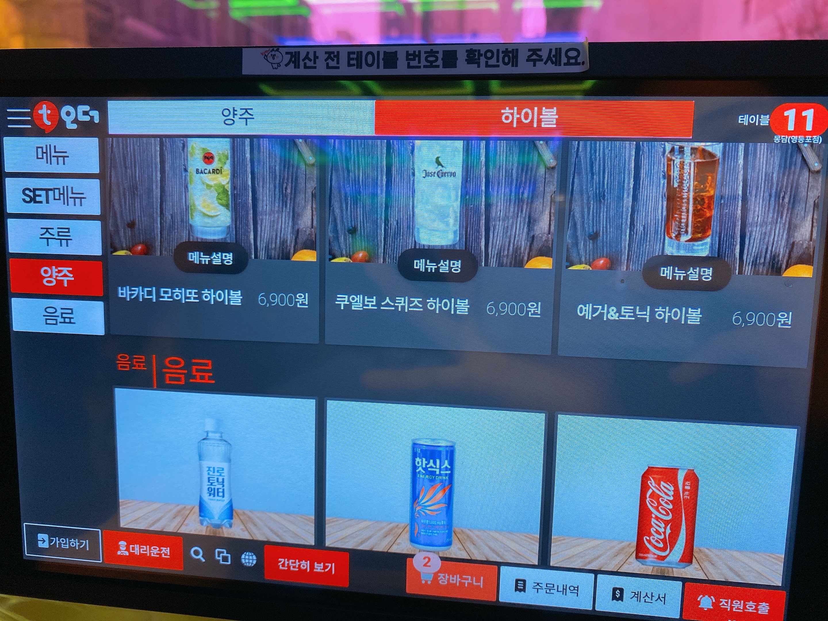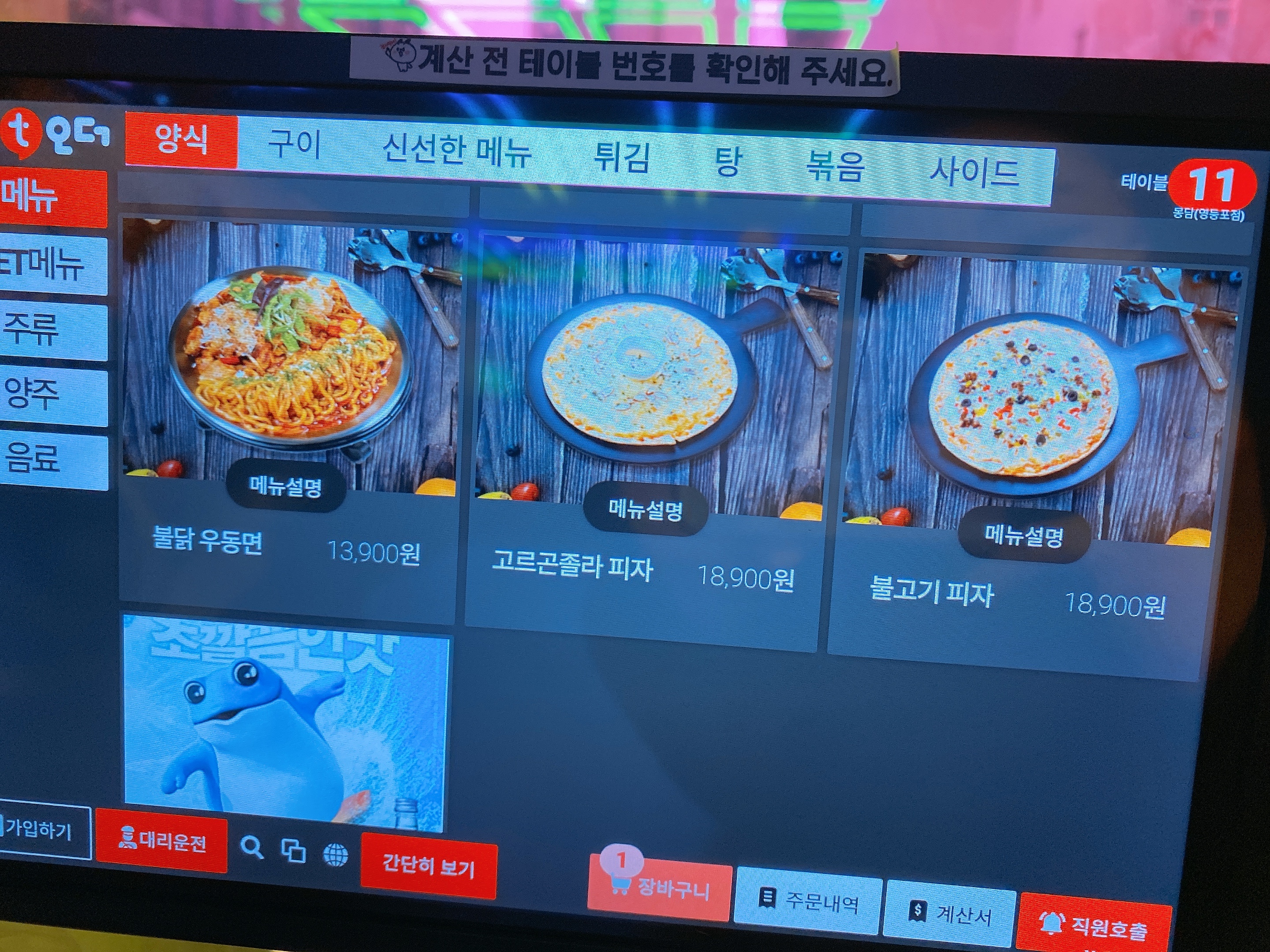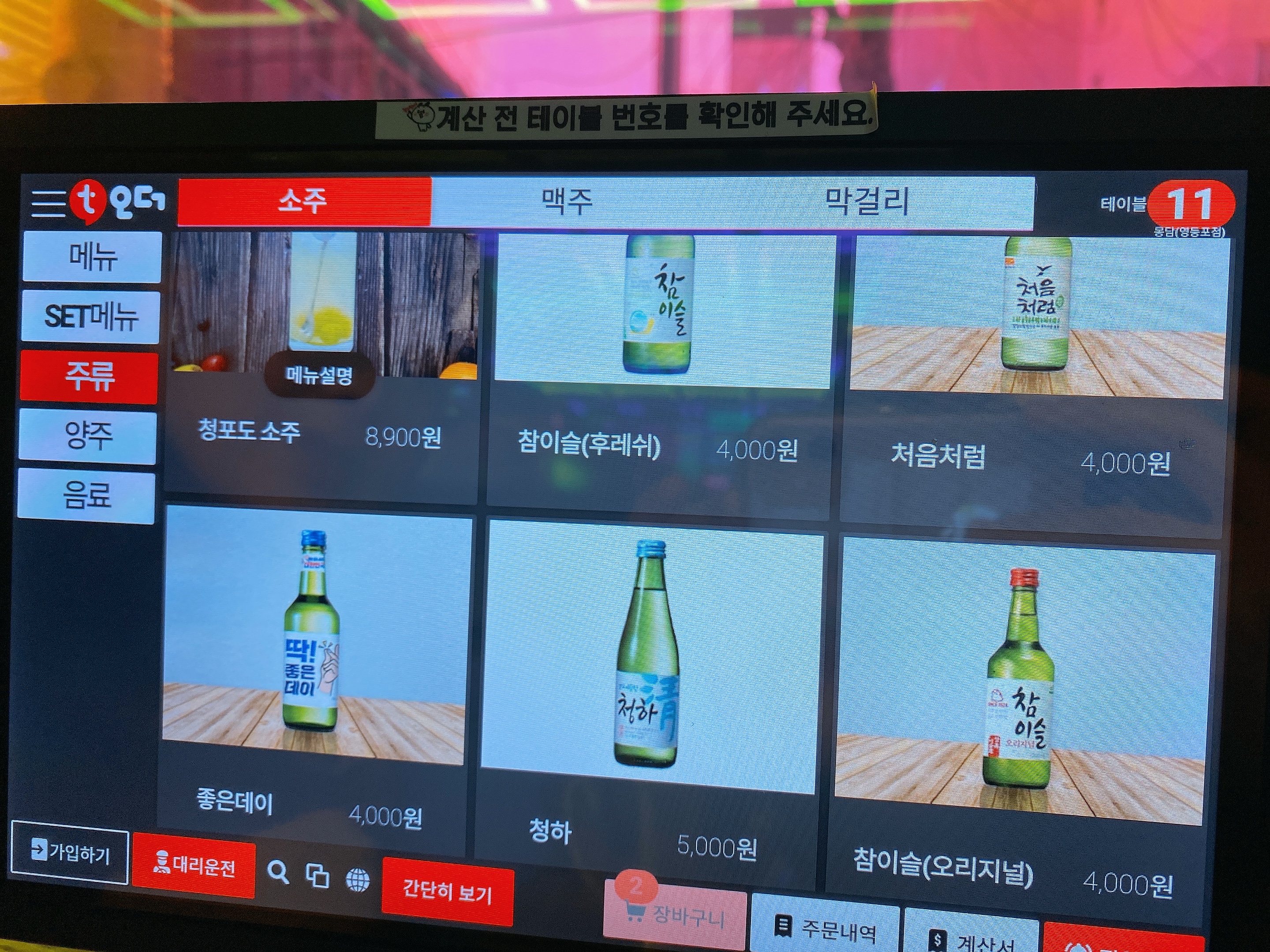 테이블에 요로코롬 태블릿이 있는데요 ~ 이걸로 주문도 하고 직원 호출도 가능해서 엄청 편했어요 ㅎㅎ