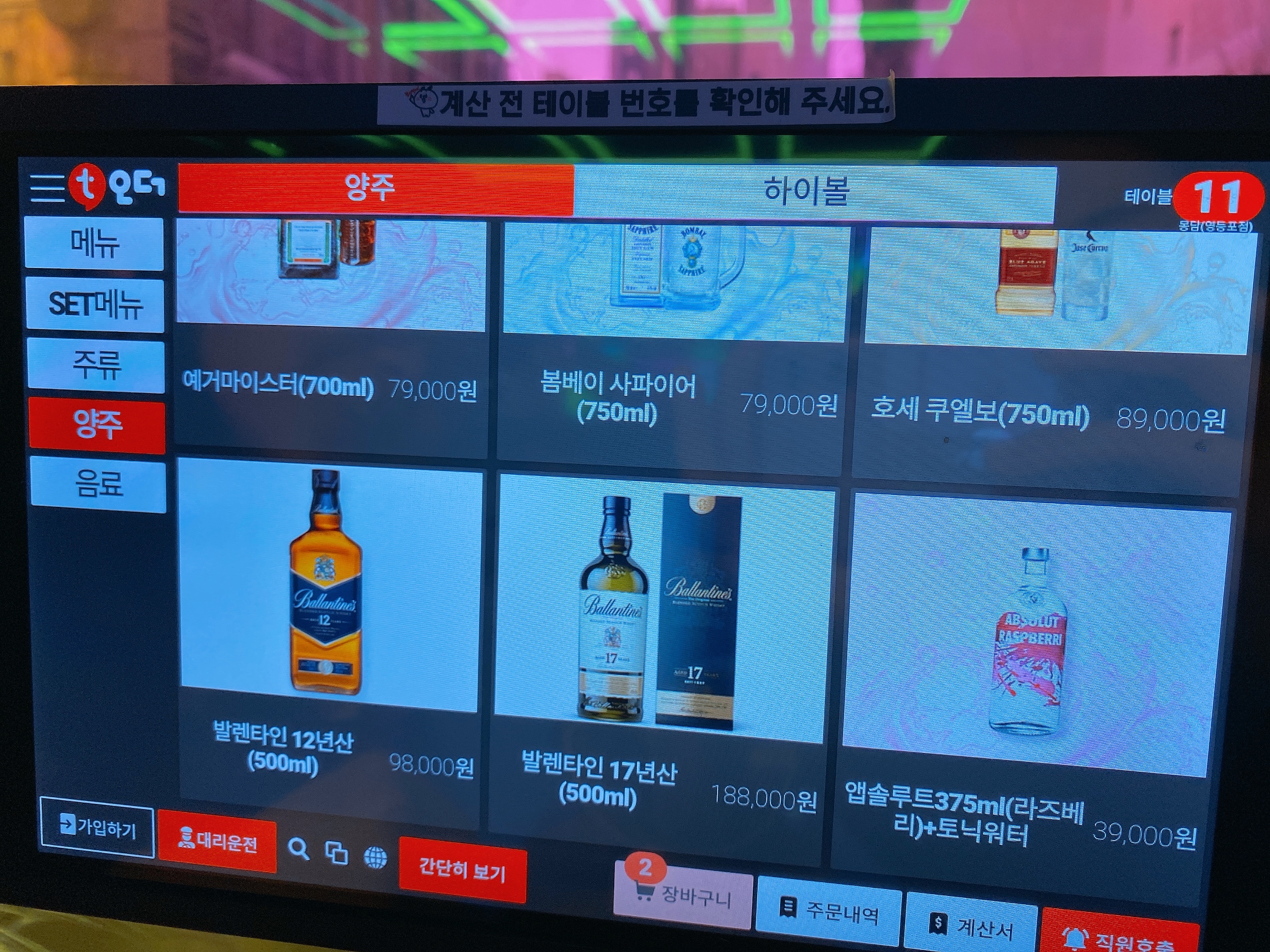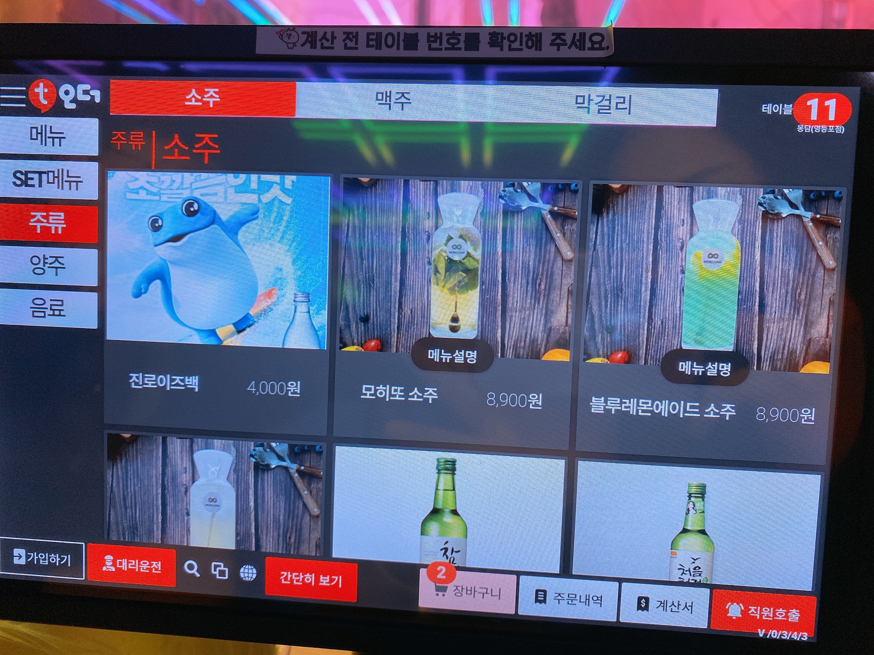 주류도 종류가 엄청 다양했는데요! 와 소주부터해서 맥주,막걸리,보드카,하이볼까지~ 진짜 취향에 따라서 시켜 먹으면 되겠더라고요!