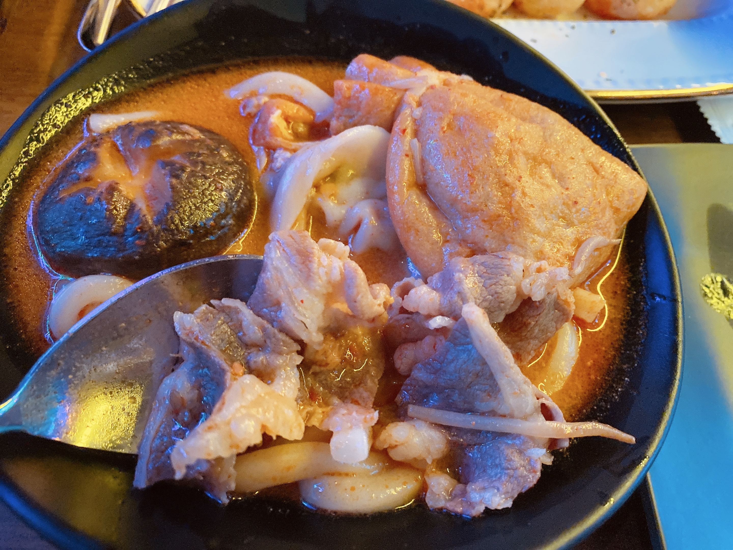 삼겹 우동 전골입니당~ 맵찔이인 저한테는 맵기가 딱 적당했어요~ 매콤하고 칼칼하니 맛있더라고요! 안에 삼겹뿐 아니라 만두, 버섯, 유부주머니 등 알차게 들어있더라고용 만두가 들어가서 그런지 맛이 만두전골 같기도 했어요 소주랑 너무 찰떡인 안주였어요ㅋㅋㅋ 굿굿